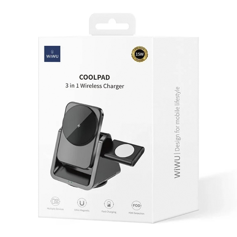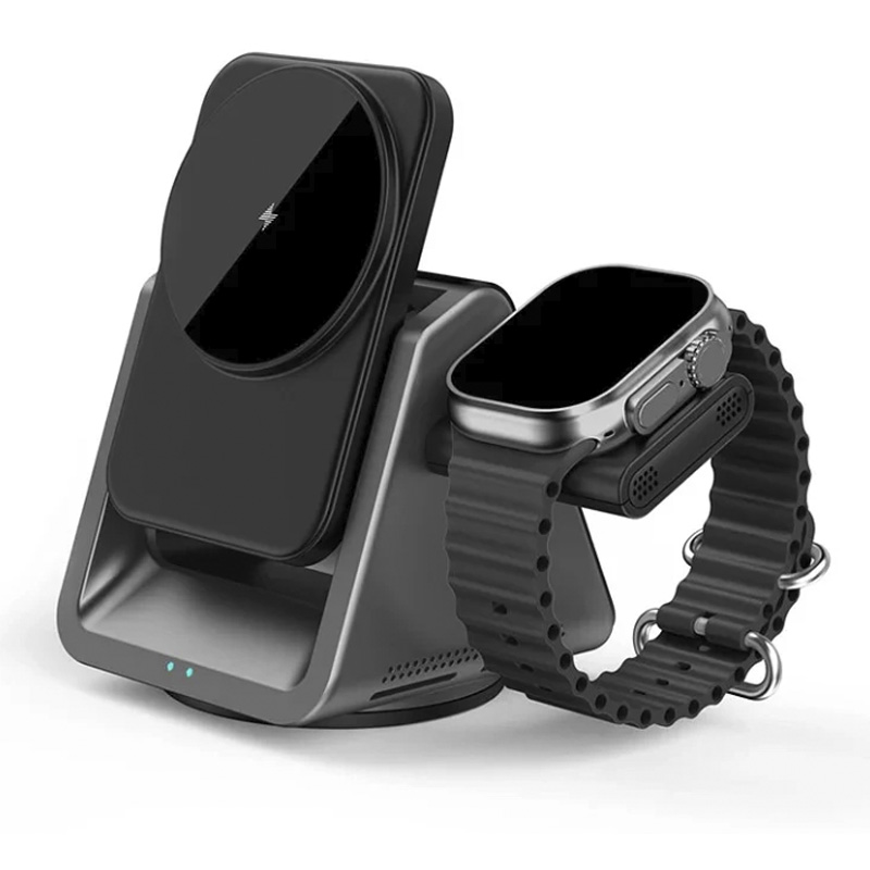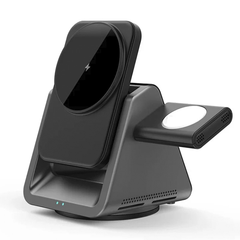 Cargador magnético 3 en 1 para móvil (15W), cascos (3W) y reloj inteligente (2.5W)