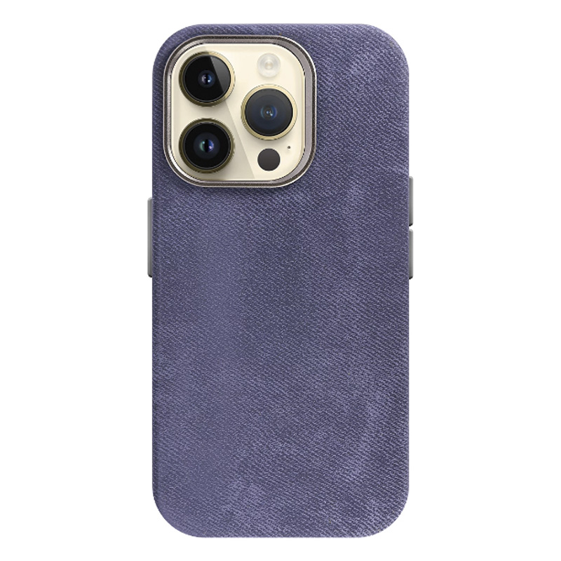 Funda premium de tela mate con cubre cámara y botones de aluminio metalizado.